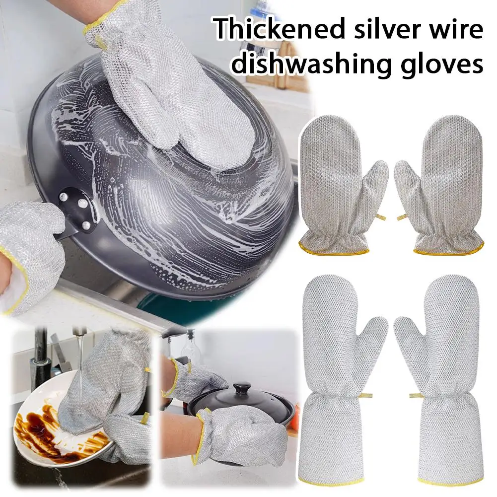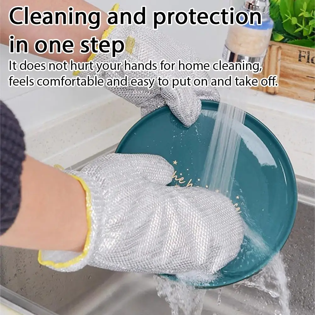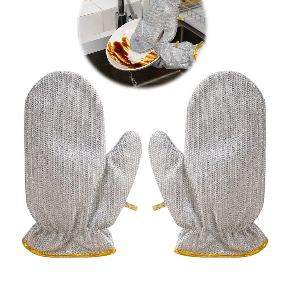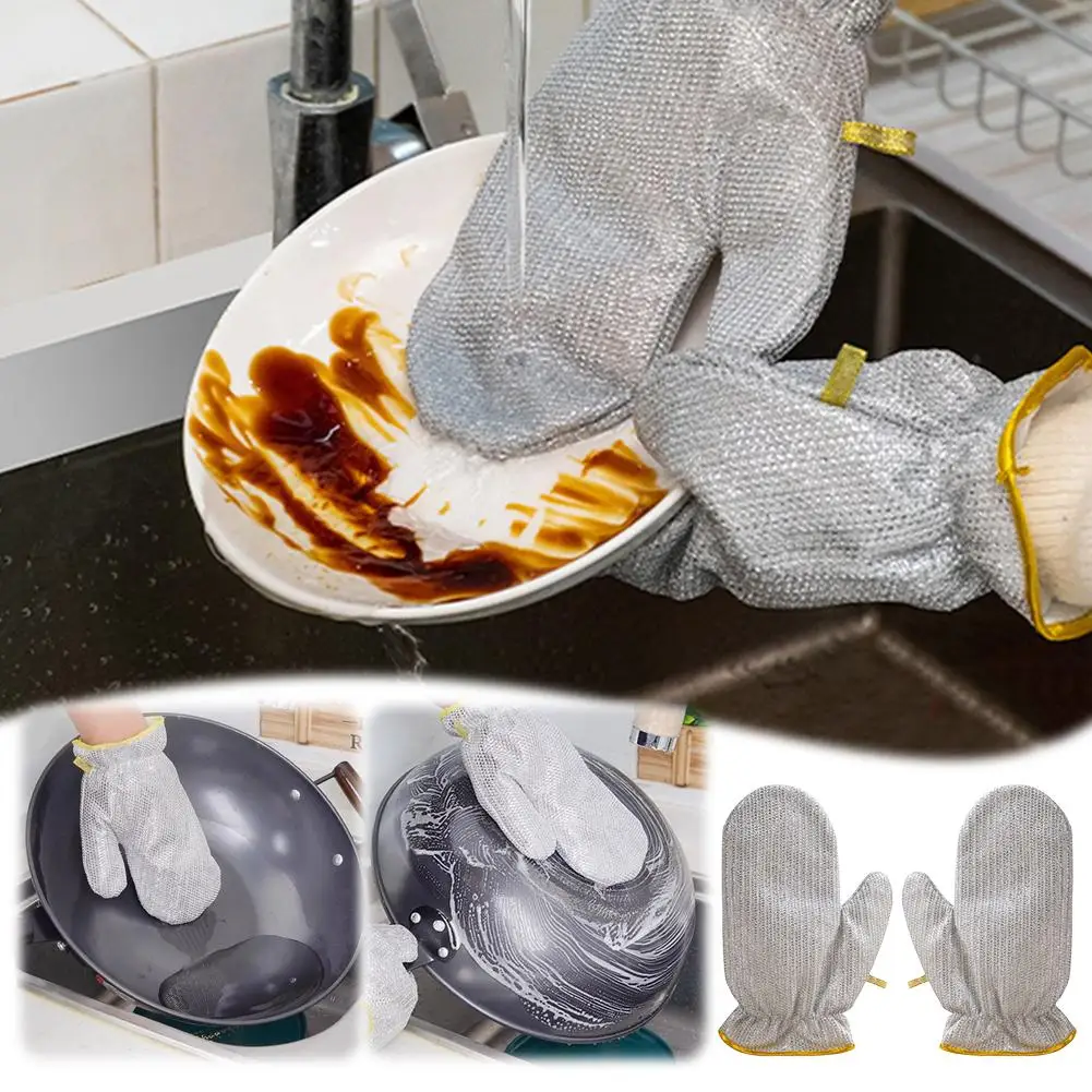 Multipurpose Wire Cleaning Cloths Non-Scratch Dishwashing Gloves Waterproof Pots Stove Top Cleaning Gloves Thicken Dishes Rags